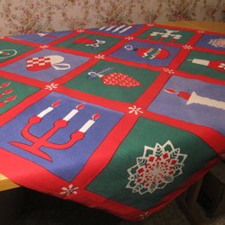 Äldre Julduk i bomull. Signerad. Mysigt julmotiv. Finns vikmärken, syns på bild, för övrigt fin.