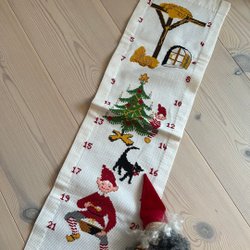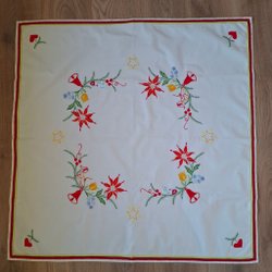 En äldre julduk med måtten ca 136 cm x 140 cm.