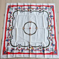 Två broderade juldukar med traditionella julmotiv i korsstygn.