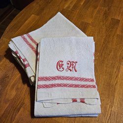 Hemsydd julgardinkappa i trevligt julmönster. Bild 3 visar baksidan.