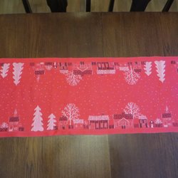 Röd virkad jullöpare med ett vackert hålmönster. Perfekt för att addera en färgklick till din outfit.