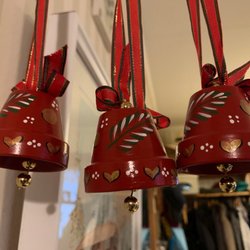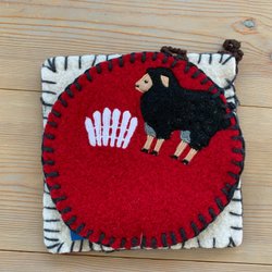 Två oanvända juldukar, ”Made in Switzerland”. Röd botten med broderier i rött. Grönt och guld. Materialet är bomull. De mäter 20 cm i diameter.