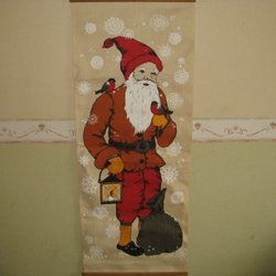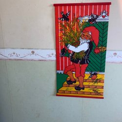 Äldre julduk med tryck tomte,tomtemor,snögubbar o.s.v