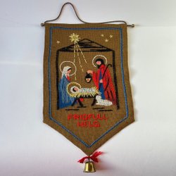Vintage broderad julväggbonad & julklocka, julbonad, stjärngossar, bonad, vepa *