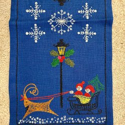 En äldre handbroderad Julbonad / Inga fläckar eller andra fel. Mycket fint skick. Ca 55 x 14 cm.
