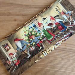 Bruna juldukar med motiv av bjällror, röda band och hjärtan - 70-tal fint skick!