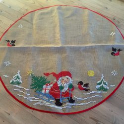 Rund julgransmatta i röd färg av jute. Mattan är 100 cm i diameter och kommer från Benson. Nypris 545kr