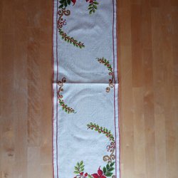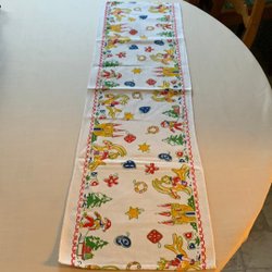 En festlig bordslöpare med tryckt julmotiv.80x40