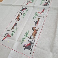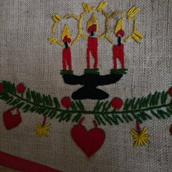 Sytt med moulinegarn på linneväv.