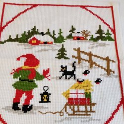 BRODERAD JULBONAD MED BARN PÅ KÄLKE väggbonad vepa