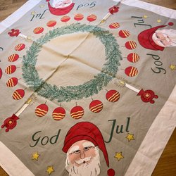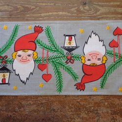 En söt julduk med tomtar. Signerad