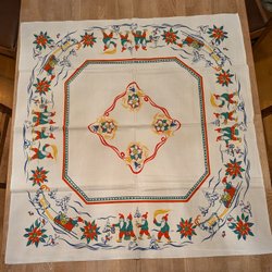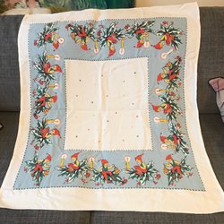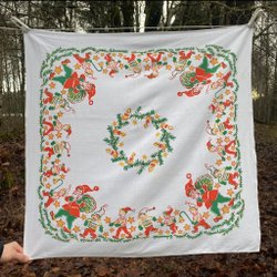 Vintage julduk jul duk med tryck julmotiv tomtar