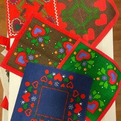 Diverse juldukar med klassiska julmotiv. Tre stycken.