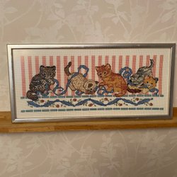 Är i begagnat skick. Något lite bleka i färgerna. Finns ett vitt streck på löparen men ändå i relativt bra skick. Nytvättade.