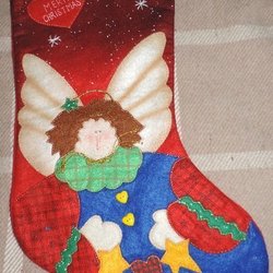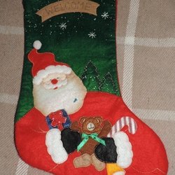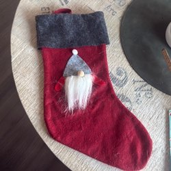 Julstrumpa med tomte motiv. Ca 40 cm i längd. Perfekt för att fylla med julklappar.
