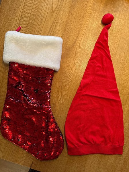 Julstrumpa och tomtemössa