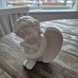 Fin röd ängel"klocka" där klockan har lossnat men finns kvar. Vänligen se bilder!