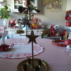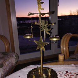 Änglaspel med plats för fyra ljus. Tillverkad i Sverige.