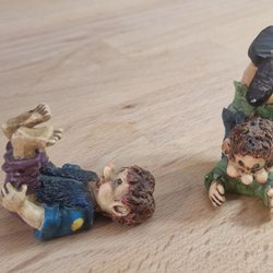 Jag tror att de en gång i tiden har varit julgransprydnader (?) då det finns tecken efter någon typ av snöre i deras huvuden.