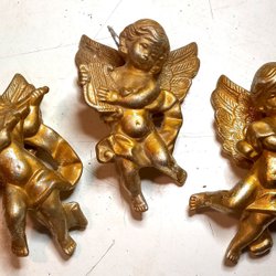 Fem stycken änglar i olika utföranden. Tre stycken avsedda att hänga exempel i vas, och två liggande. Nagg förekommer, se bild 6.