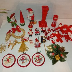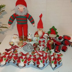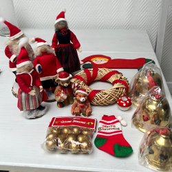 Ett varierat urval av juldekorationer. Innehåller bland annat tomtar i olika material och utföranden, en julkrubba, ljusstakar, samt andra festliga detaljer för att skapa julstämning.