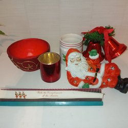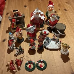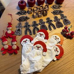 Säljer Diverse juldekorationer som tomtar, ljusstakar, stjärnor, skålar, grytlappar och annat.