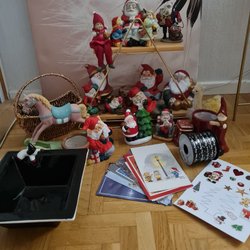 Ett sortiment av diverse juldekorationer. Inkluderar ljusstakar och prydnadsföremål för att skapa en mysig julstämning.