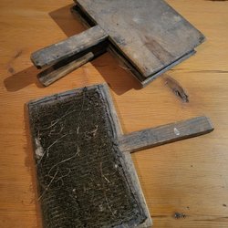 Plattan är 19x16,5 cm, huset är 14,5 cm högt.