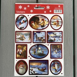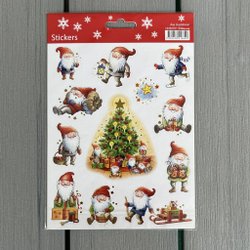 Ark med tomtestickers. Perfekt för att dekorera julkort, paket eller annat pyssel.