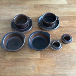 Nilsjohan, glöggryta + 8 muggar + 1 slev, fint skick, Rolf Sinnemark.