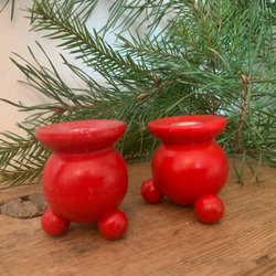 Står på ett ställ där man placerar ett värmeljus under för att hålla glöggen varm.