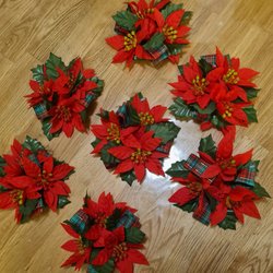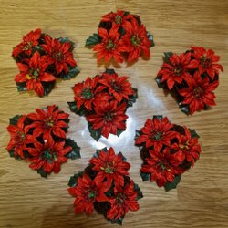 7st med röda "julrosor" ljusmanschetter jul. Se bilder.
