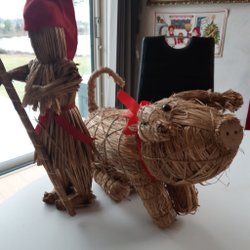 Juldekoration - Halmfigur med Tomte för dörr eller vägg