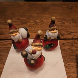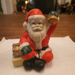 En söt juldekoration i form av en julgran med en tomte och ett barn. Den är ca 20 cm hög och 18 cm bred.