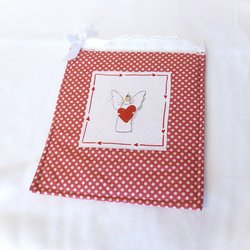 Flaskpåse / vinpåse beige med röda änglar o hjärtan