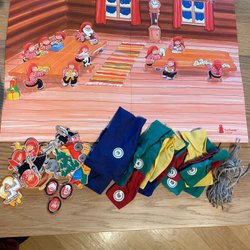 Liten fin glittrig, charmig Julkalender i papp från Tyskland med motiv av en tågresa