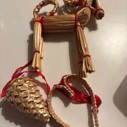 17 handslöjdade julprylar i trä , tomtar , svampar , ljussstskar grisar
