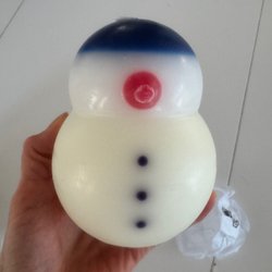 Ett dekorativt ljus i form av en snögubbe med hatt och halsduk. Perfekt för juldekoration.