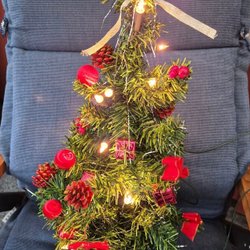 Mini-julgran, allt fungerar bra, julgranslamporna ingår redan, bara batteriluckan saknas