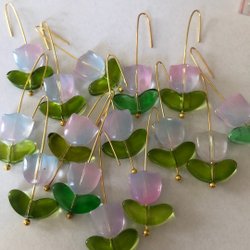 Påskrispynt. 20 Glas Tulpaner Blomma och blad. Hänge i guldfärg. Dekoration