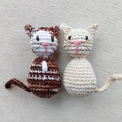 6 virkade harar i rosa, gult och lila bomullsgarn.