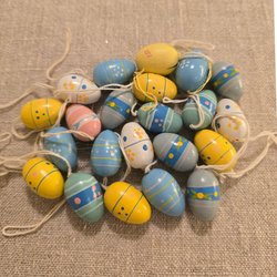 Påskägg i olika storlekar att hänga i påskriset