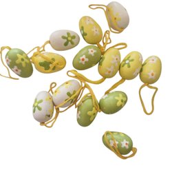 Dekorativa handmålade påskägg med blommönster, för upphängning. Lite större än normalstora ägg