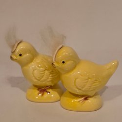 Mycket dekorativa påsk krukor med en påskkyckling. Tillverkade av keramik. Utmärkt skick.