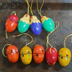 Trä ägg med målade detaljer.handmade 5st se på bilderna