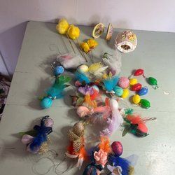 Påskpynt till påskriset gjort av "piprensare", 11 delar. Skick enligt bilder.