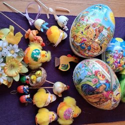 Diverse påsktextilier, retro.