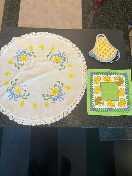 Påskdukar.flask dekorationer runda duken är 50 cm i diameter lilla duken22x22 cm