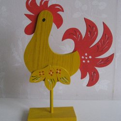 En dekorativ tupp. Otroligt välgjord och naturtrogen. Inte signerad. Så fin att pynta med till påsken eller som en utstickande detalj i hemmet. Materialet är trä och fötterna är metall och ståltråd.