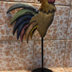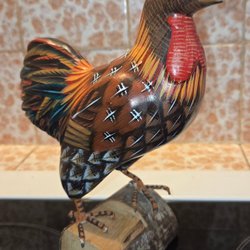Mycket dekorativ höna målad i glatta färger.